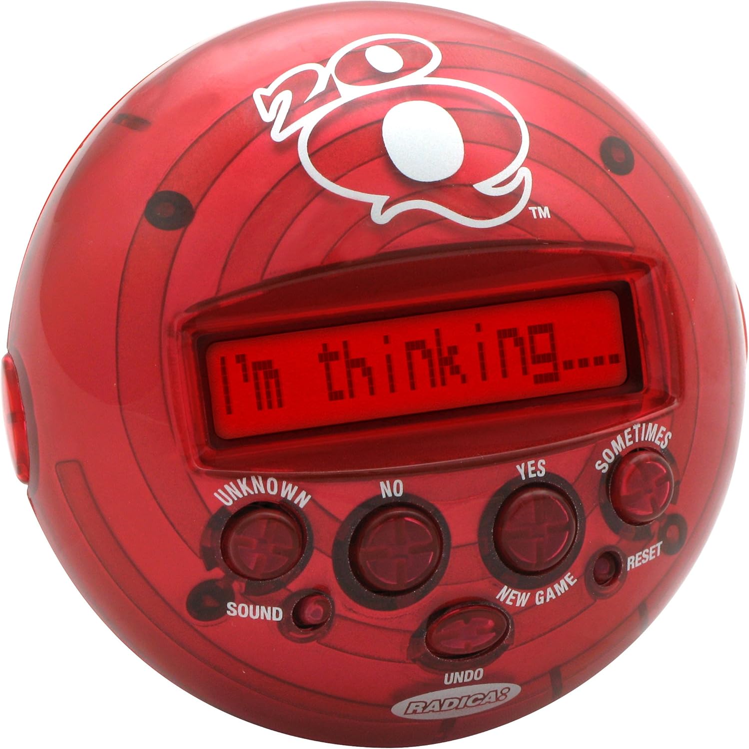 The Radica Games 20Q is a toy that asks you up to twenty questions and guesses what you're thinking of. As long as the object was generic enough, it would almost always guess it correctly with an unexpectedly vast dictionary. Very fun design, makes cool sounds too. This was easily a childhood staple for long road trips or empty Sunday afternoons.