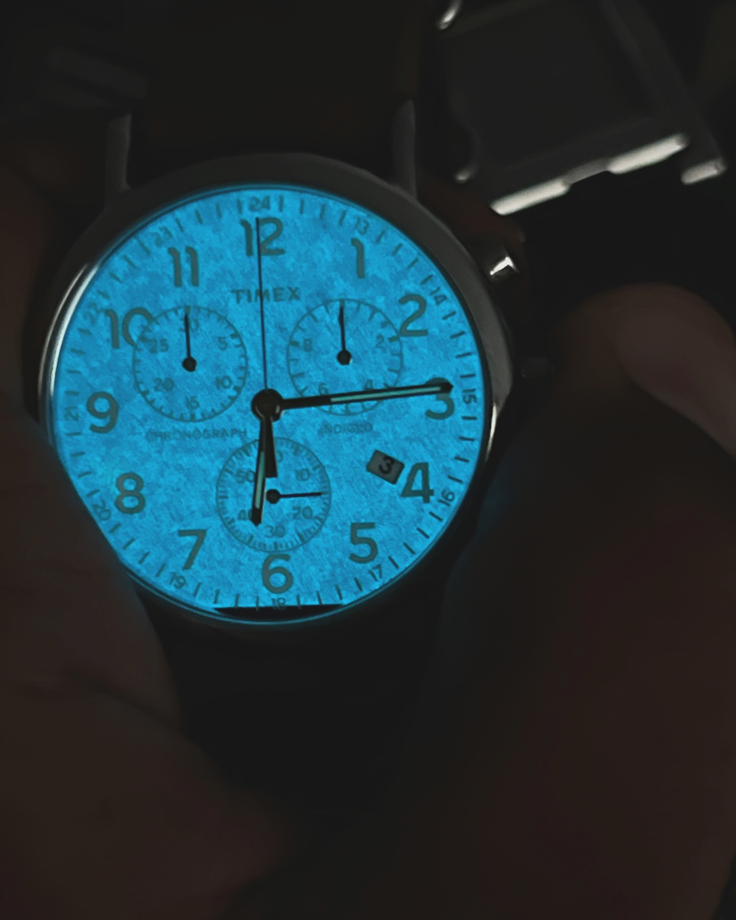 The Timex Weekender Chronograph is a chrome-plated analog wristwatch. It has this backlight called Indiglo that's a really nice turquoise color in the dark. I've worn several different watches over the years that I've mostly forgotten about, but I do vividly remember this one that I found used on eBay a few years ago. I can't remember why I stopped wearing a watch every day- this was the last one I used to wear and it's a lovely shade of blue. I should start wearing it again at some point.