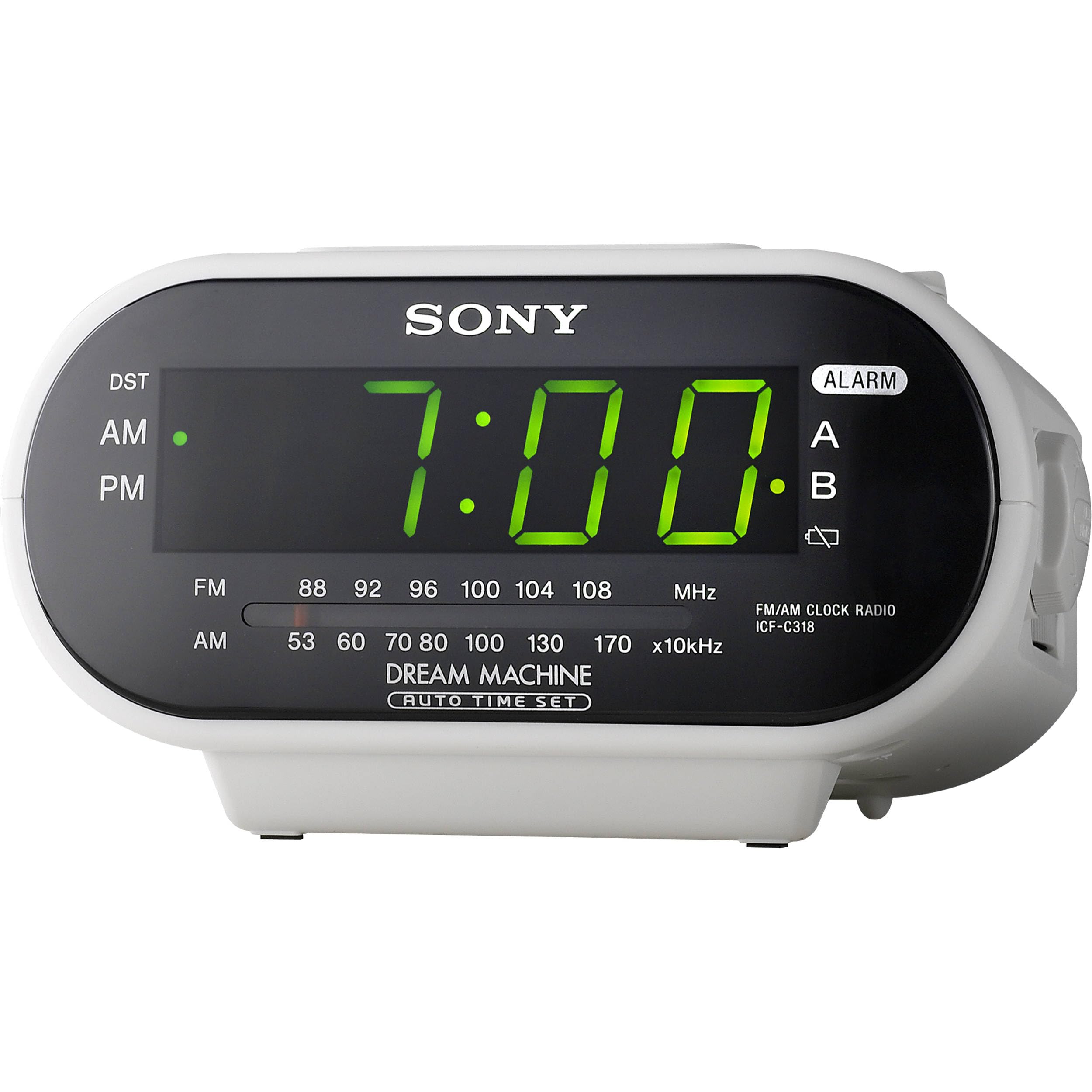 The Sony Dream Machine ICF-C318 is a wall-powered alarm clock with an AM/FM radio, automatic DST, and two alarms. I initially bought this as a throwaway prop for a college project, but instead kept it and started using it as my alarm everyday. Having a dedicated alarm clock (that also isn't ugly) hasn't meaningfully improved my life compared to using a phone alarm, but it looks nice in my room.
